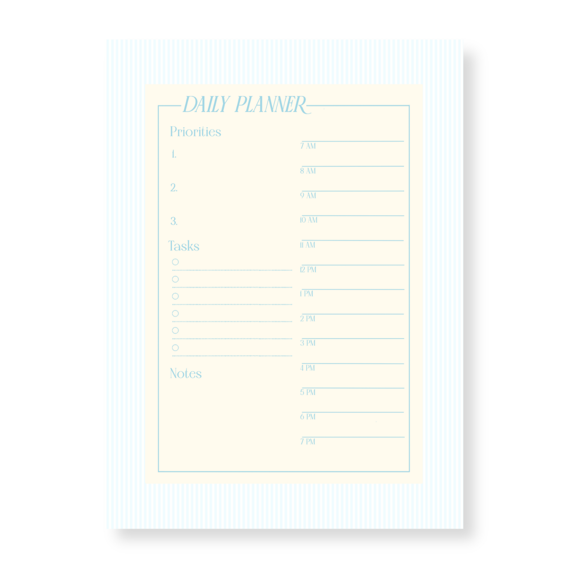 Bring structure and style to your day with this thoughtfully designed daily planner page, featuring a vibrant border and a clean, minimal layout that keeps your priorities front and center. Designed to help you stay focused without feeling overwhelmed, this planner makes it easy to organize tasks, highlight what matters most, and capture important notes throughout the day.